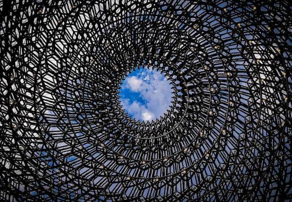 The Hive is an award-winning, multi-sensory installation that highlights the crucial role of bees in our ecosystem. Inspired by scientific research, this 17-meter-tall structure is both visually striking and educational. Walk inside to feel the vibrations and hear the hum of a real beehive, and learn about the intricate life of these vital pollinators.
